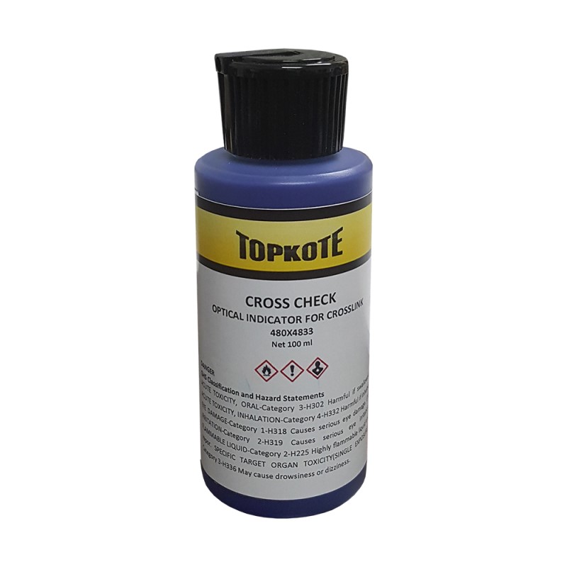 Cross Check concentrated optical indicator is designed for use in Crosslink wipe-on or spray-on adhesion promoter. It helps to create maximum visibility during application and aids in the prevention of uneven application.