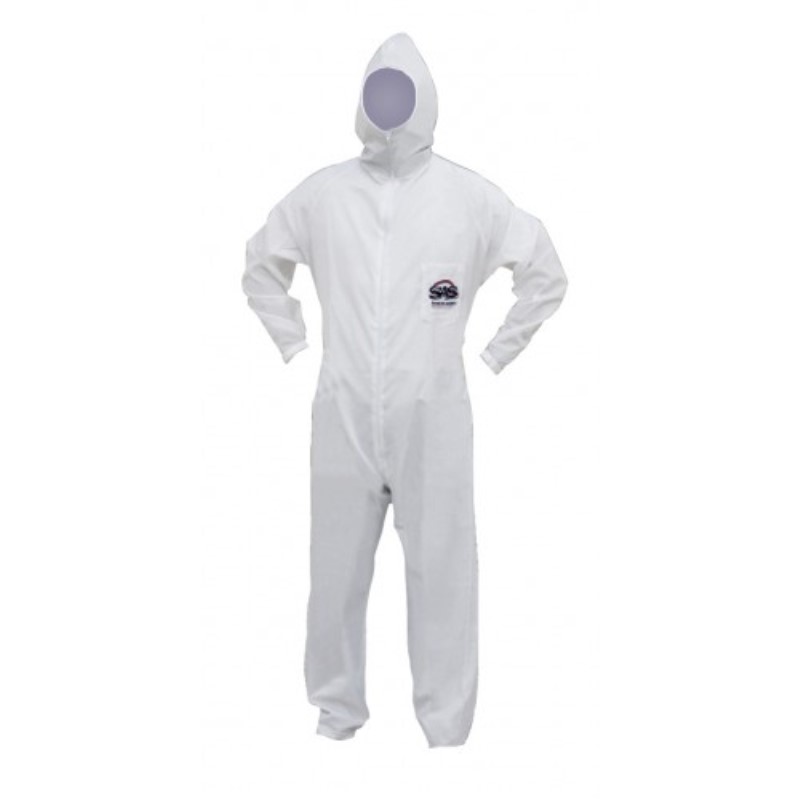 The SAS Safety Suit is a lightweight and breathable nylon coverall designed to keep you and your clothes protected when working with harsh chemicals. This safety coverall is designed with a full pullover hood, velco wrist and ankle closures, and zipper front style to ensure complete protection. It's machine washable and reusable, making it a cost effective way to keep your clothes and body safe from chemicals and debris.